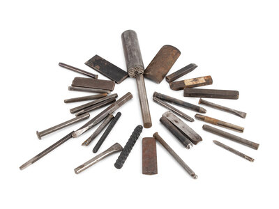 lot of 30, includes a variety of decorative stamps and tools