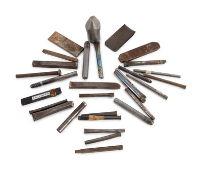 Collection of Jesse Monongya's Personal Silver Stamps and Hand Tools