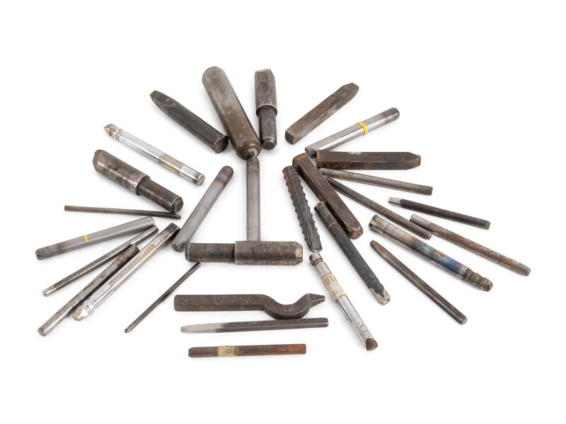 Collection of Jesse Monongya's Personal Silver Stamps and Hand Tools