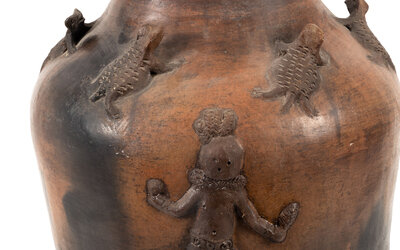 Pottery Jar, with Applique Figures