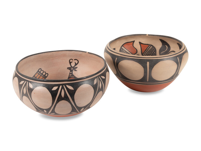 the second designed with birds, pronghorn deer and an antelope; height 7 inches x diameter 13 inches
