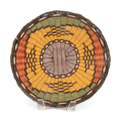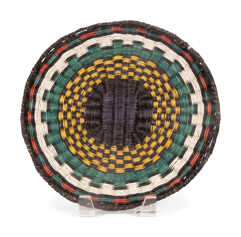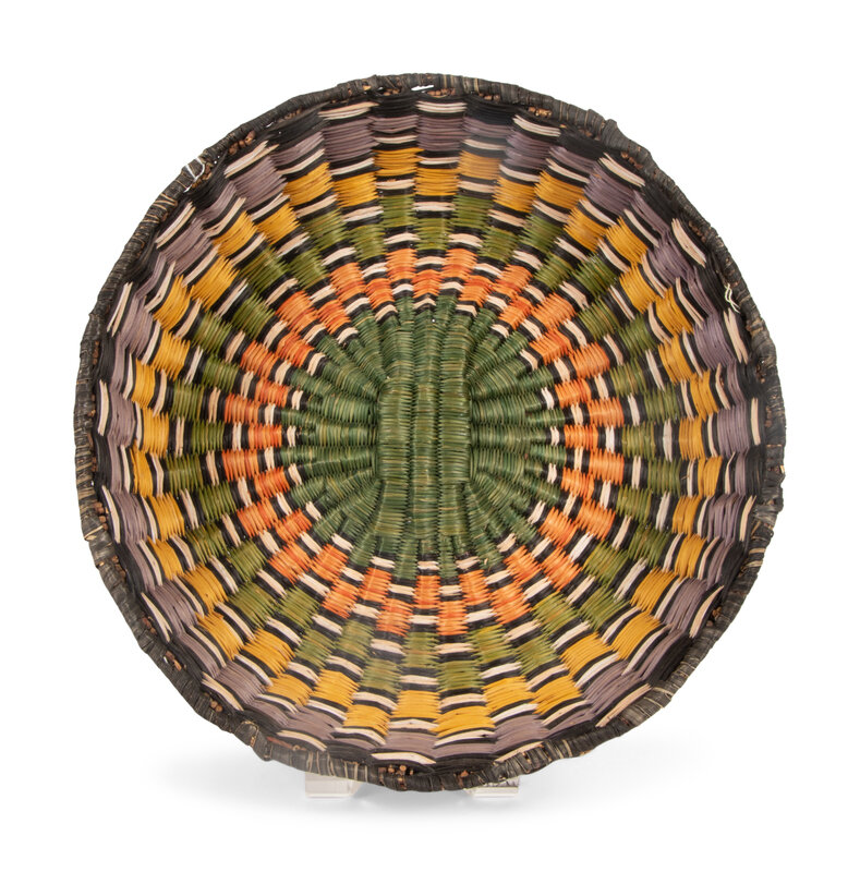 a colorful checkered basket, height 3 inches x diameter 11-3/4 inches