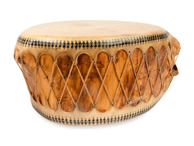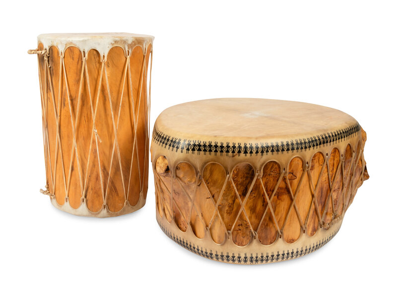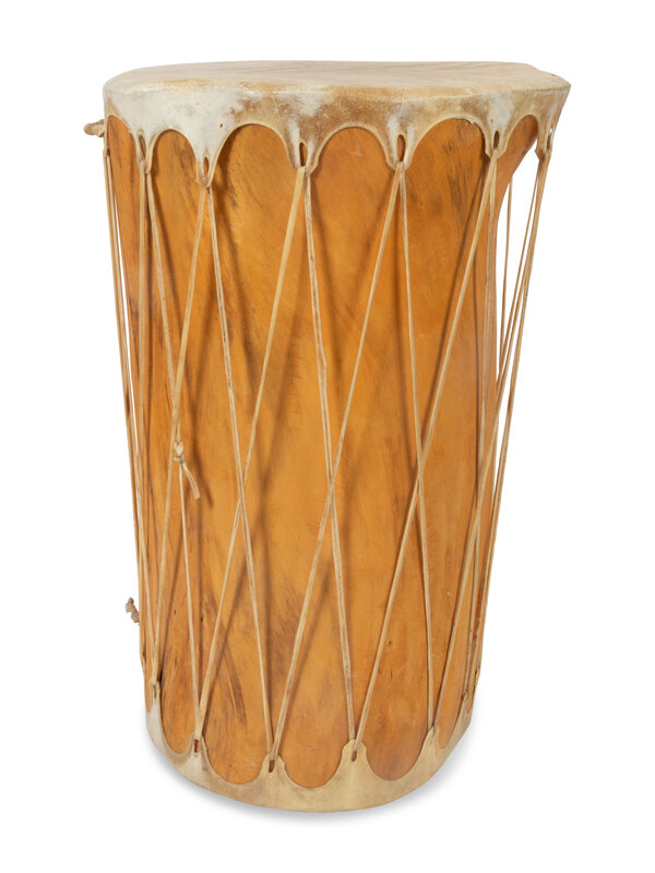 a tall cylindrical drum; unsigned, height 28 inches x width 19 inches x depth 15 inches