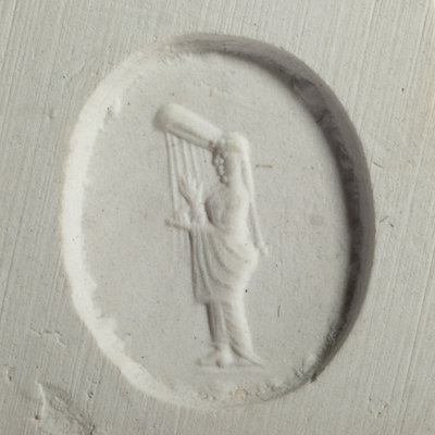 A Greco-Persian Pale Blue Chalcedony Scaraboid with a Muse Playing a Lyre