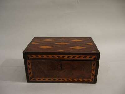 Rosewood and satinwood diamond parquetry to lid, later fitted with a Dunhill humidifier.