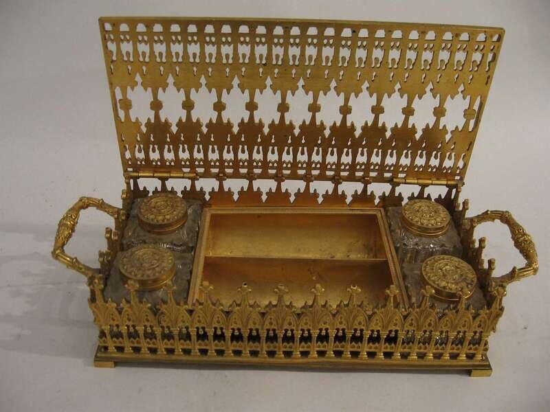 French gilt metal ink stand late 19th century