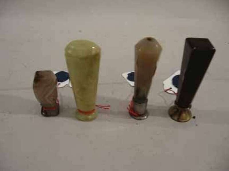 Two agate, one onyx and a stone seal, one with a brass seal, one with a silver seal.