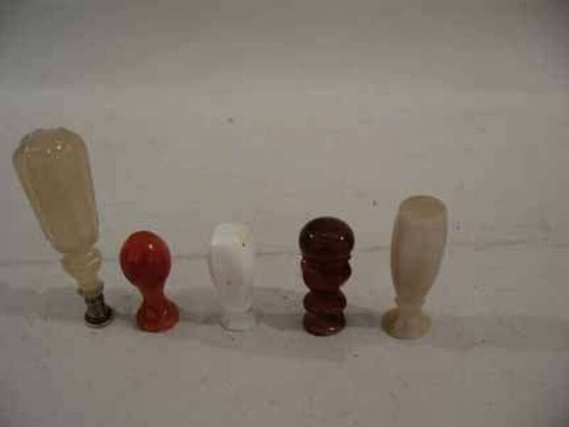 Of elongated rectangular form, colors range from white, light brown to orange and red, one with a silver mounted seal.