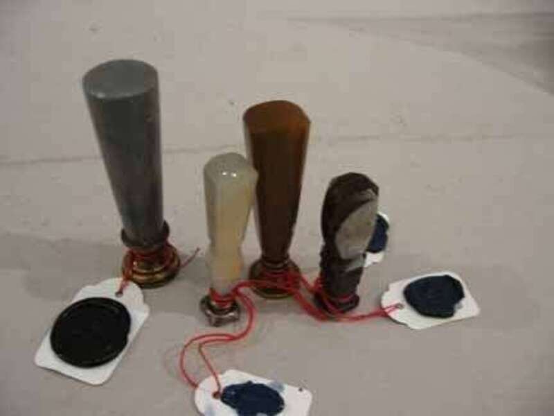 Colors range from white, grey, light brown and dark brown, Two with silver seal mounts and two of brass.