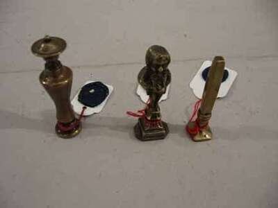 Three brass wax seals 18th century and latter