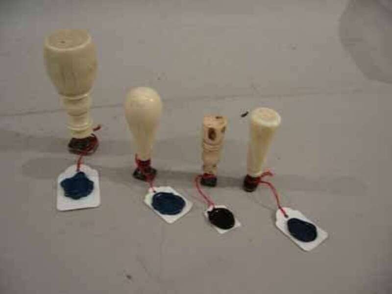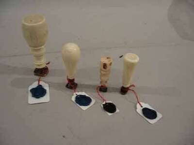 Three ivory and one bone seal, two with silver cast seals.