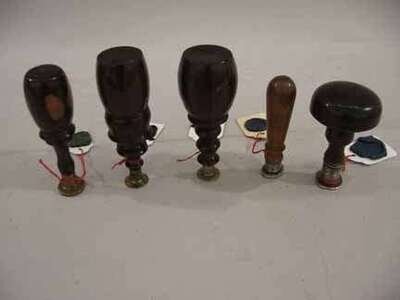 One Swedish walnut seal, L.E, and four English rosewood seals, D, and other monogrames.