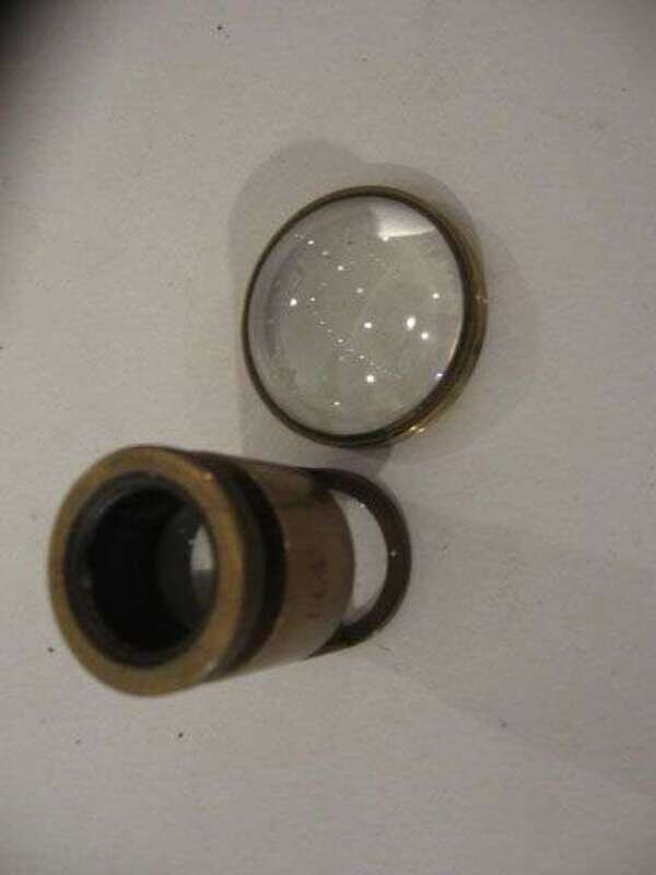The pocket glass is screw focusing over a cylindrical pillar stand, together with a circular lens.