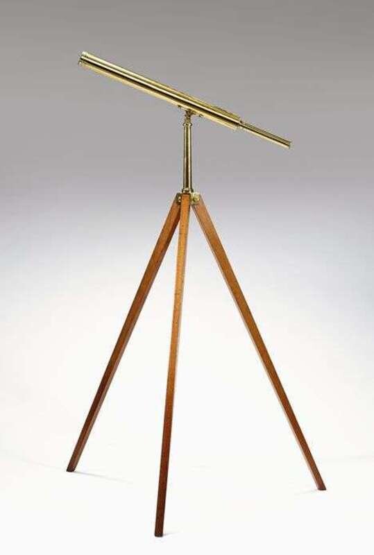 Signed Dollond, London to tube, with thumb operated fine focus, 2 in objective lens, timber tripod stand.