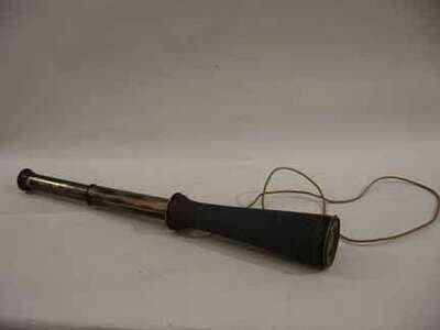 Drevete, of a single pull tube focus, with sliding brass eye cover slide, screw dust cap, and fish skin hand grip.