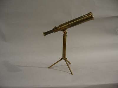Signed Cary. London, with a fold away fine brass tripod stand dismantles to store in the body, 1 3/4in subject lens, internal fine focus by knob leading from the shoulder, coarse focus by draw tube (8 in), screw on dust cover.