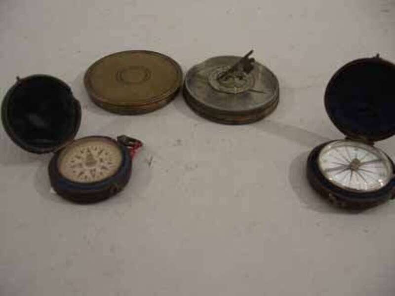 The sundial is covered with a brass screw cover, silvered dial, the two compass's are cased, one is enameled the other is dry card.