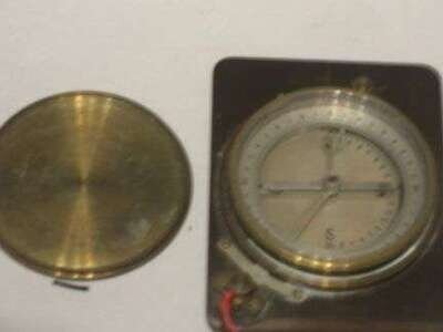 V. Linhof, Munchen, brass rectangular base and case, glass dome, brass dust cover, in a leather case.