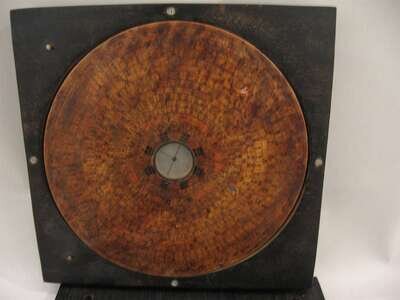Of circular form, with a colored paper gore to the surface, with a magnetic compass to the interior, in a square timber base.