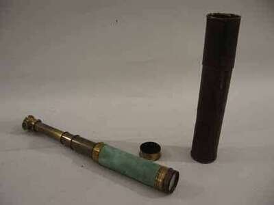 English, with a push slide multi-focus eye piece, leading to a three draw tube body, 1 in subject lens, and dust cap. With case.