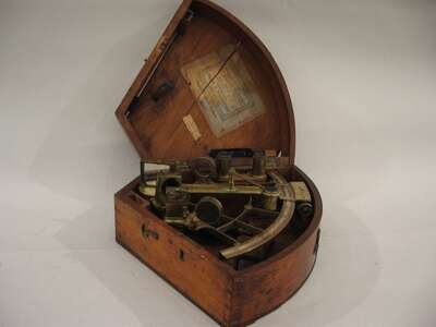 Piers, Liverpool, drum mechanism, seven filters, slow-motion control with vernier read-out, magnified viewing arm, measuring 140 degrees, timber box with reatilers label to the interior.