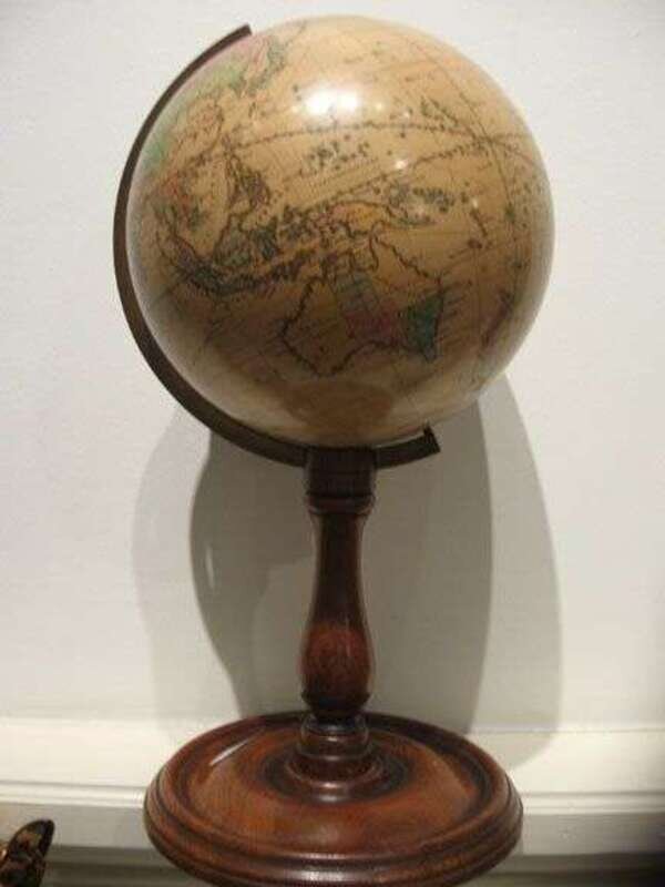 Gilman Joslin, Boston, of typical sphere form, constructed of twelve color paper gores, with a brass meridian, over a timber stand.