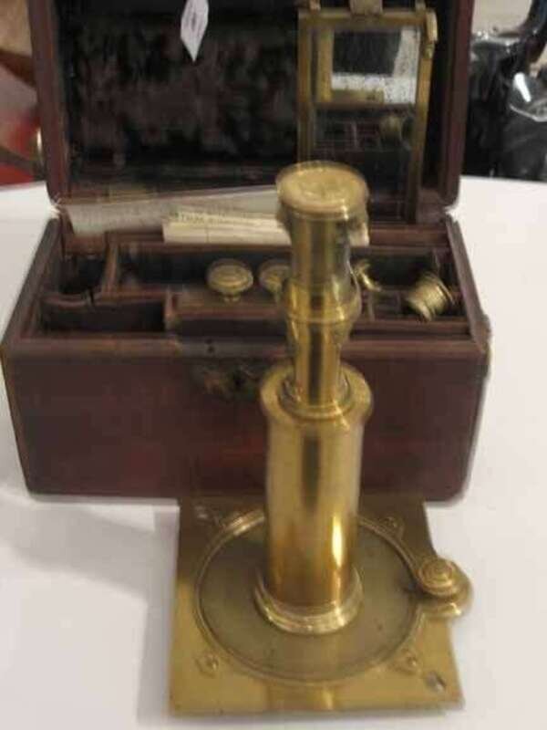Attributed to Edward Culpepper, the microscope includes stage forceps, with original sides and there description, in a fitted mahogany box.