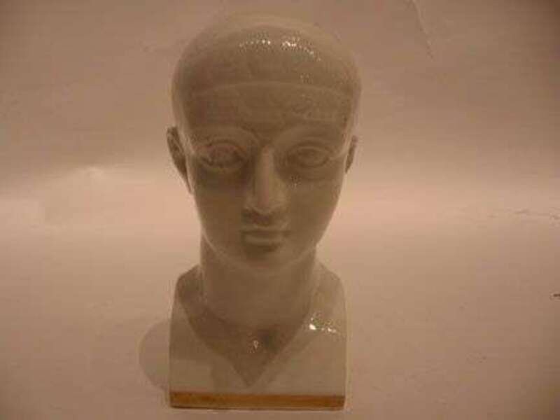 By De Ville, the finly modeled head is inscribed with a sectional skull, over a square plinth base.