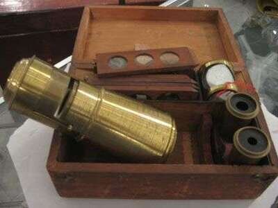 Of cylindrical form, with two screw lens, and seven slides, each containing three specimens.