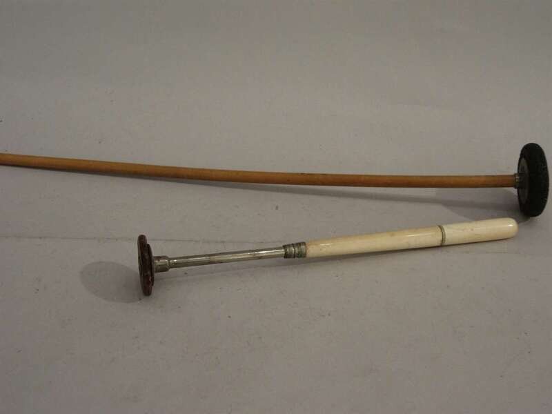 One with a ivory handle the other timber, both with rubber hammers.