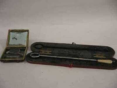 Including a ivory and steel tonsilletor in a fitted case, together with a complete dental scaling set with mirror in a fitted box.