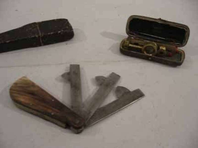 Including a rare ivory and brass cased insectoscope, together with a cased horn handled fleam by G. Gregory.