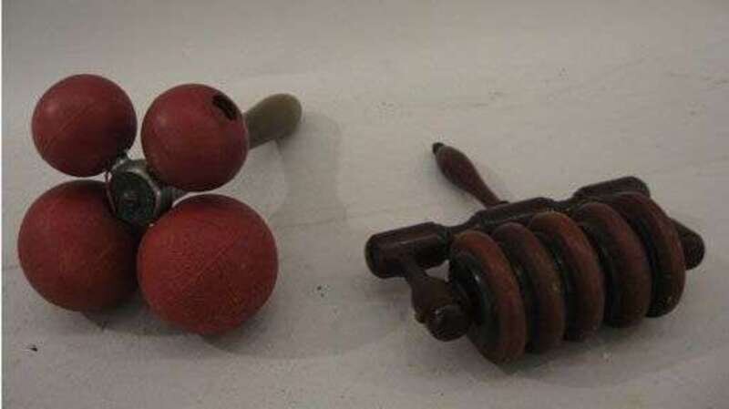 Including a British made Neda massagers, with four graduating rubber balls, together with a timber turned massagers.