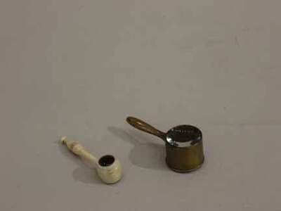 Both of gavel form, one brass the other bone.