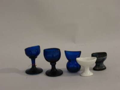 Comprising of three cobalt blue glass baths, a porcelain, and an agate glass bath.