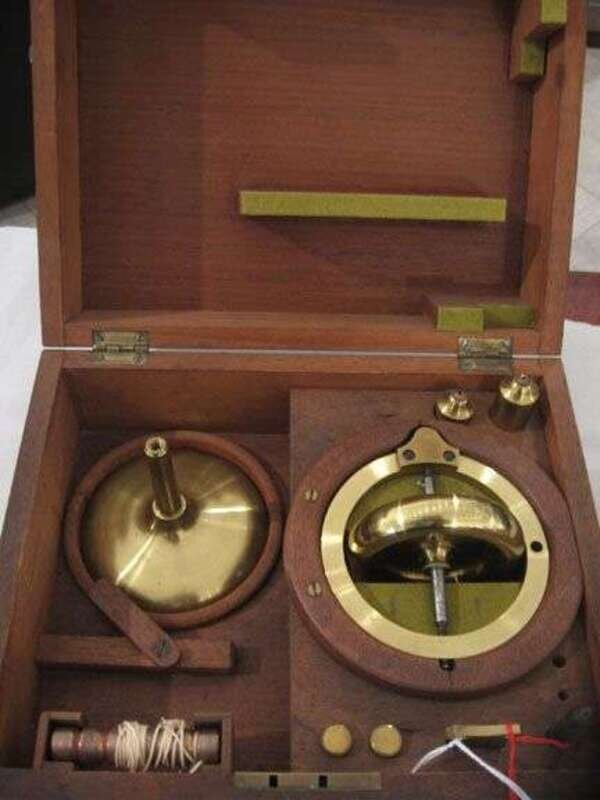 Fine quality brass gyroscope instrument, in a fitted timber box.