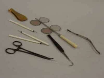 Including a tongue depressor, a set of soft light lenses, tongue scraper, three eye instruments and two other items.