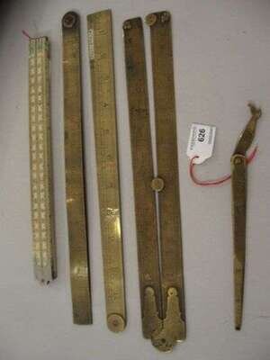 Including four brass rulers and a ivorine and white metal four fold expanding ruler.