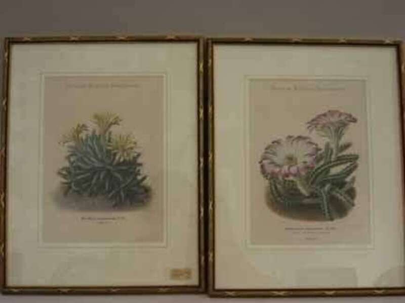 A pair of German floral prints of cacti, artist is unknown. Framed.