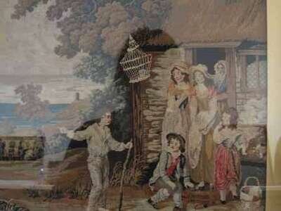 Early 19th century needle point done in the likeness of a painting by Whistler (1780/1785) 'Lost Sailor Boy'. Framed.