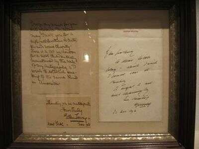Signed letter by Henry Irving on Lyceum Theater letterhead in the hand of Irving's secretary and partner Bram Stoker, author of 'Dracula'. Small signed note by Dame Terry Ellen actress and wife of Henry Irving.
