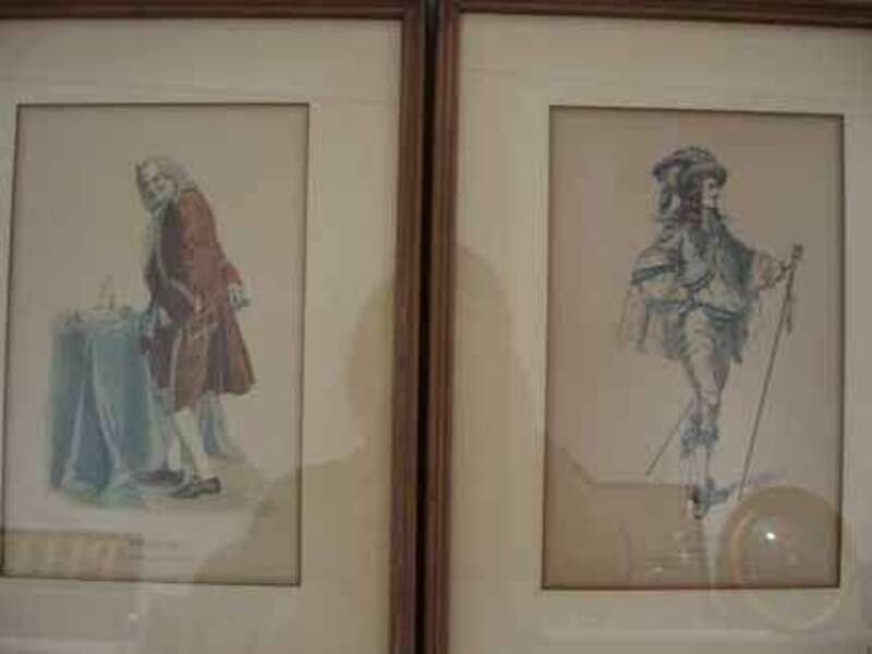 Two French etchings of historical characters, Don Juan and Voltaire. Both prints are matted and framed.