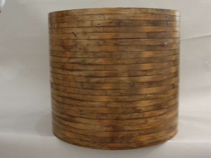 Of cylindrical form, the timber parquetry frame supports a copper interior, suposedly used to cast turbine parts.