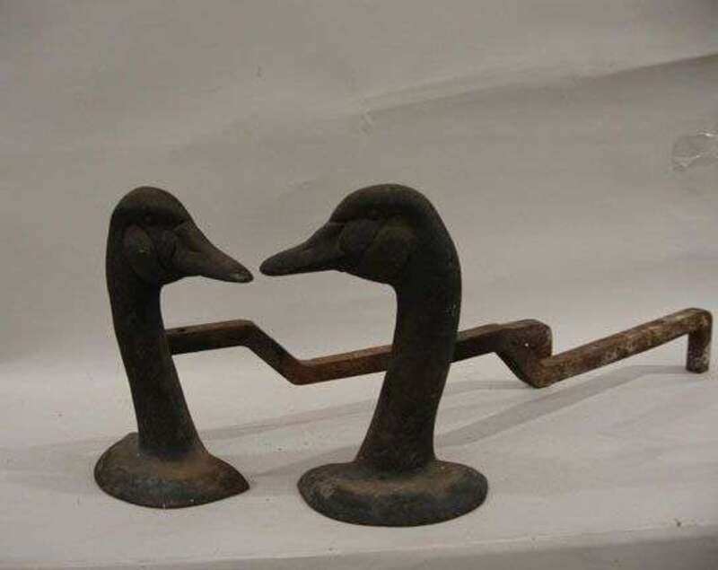 The iron terminated in a painted iron model of a ducks head, some losses.