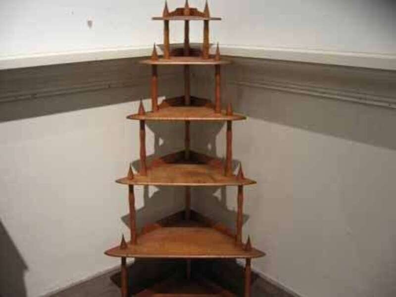 Comprising of six graduated tiers, supported by turned columns, together with a hanging shelf.