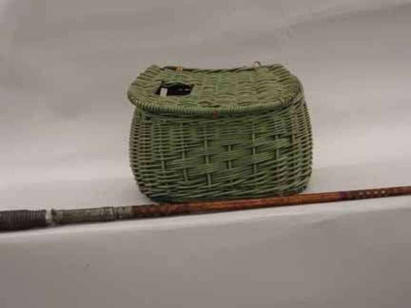 Split bamboo fish rod and basket c. 1920