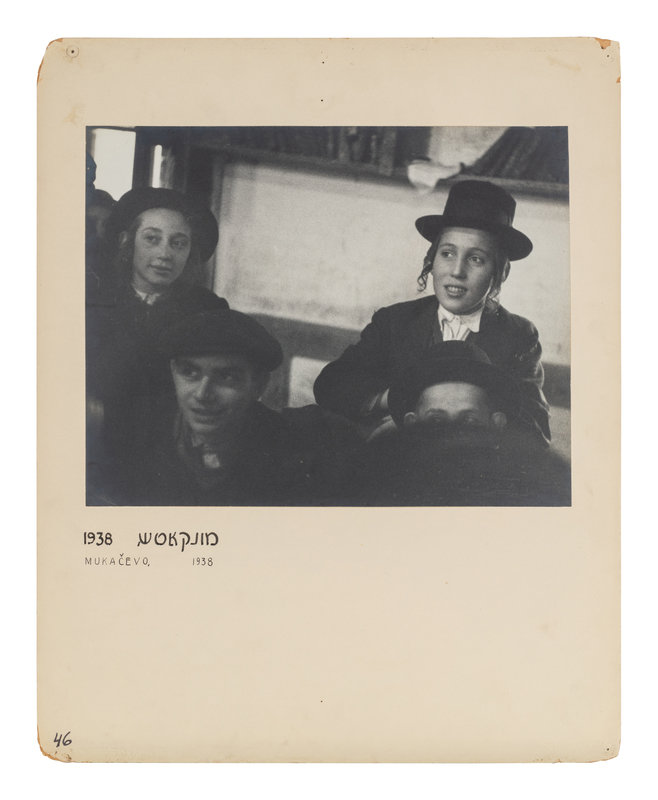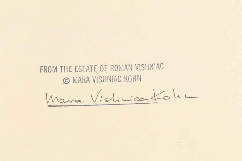 Gelatin silver print, mounted and printed c. 1938, titled, dated and notation '46' in ink on the mount; signed by Mara Vishniac Kohn, Estate Executor, in ink on the Estate copyright credit stamp and stamped 'Yivo Institute for Jewish Research, Inc., 1048 Fifth Avenue, New York 10028' on the mount verso.