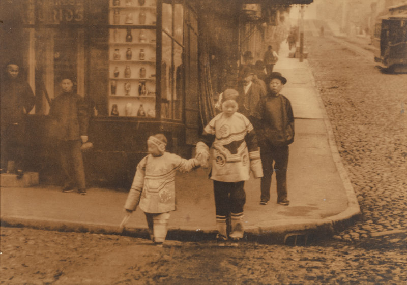 Untitled (Children at street corner, Chinatown,) c. 1900
