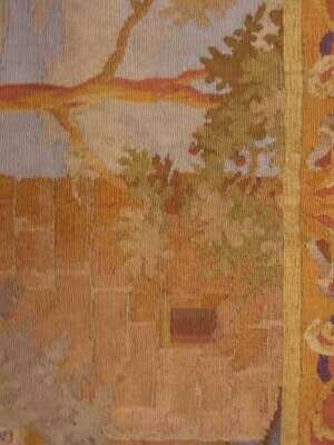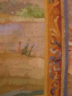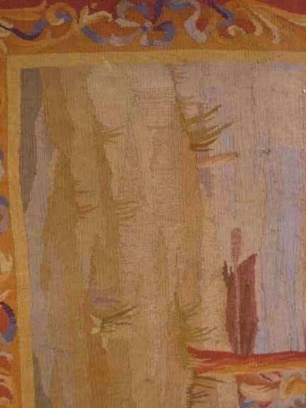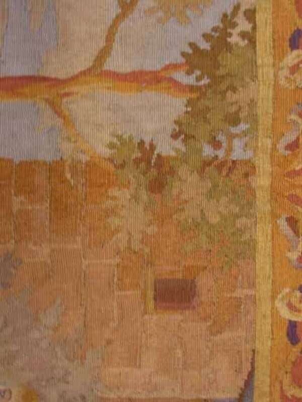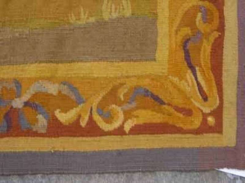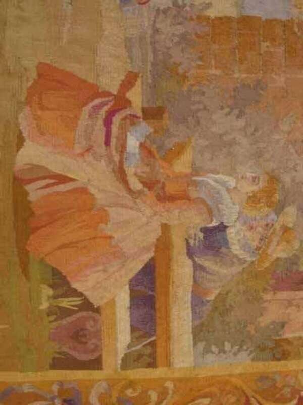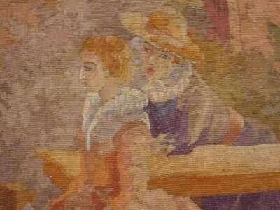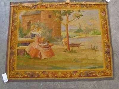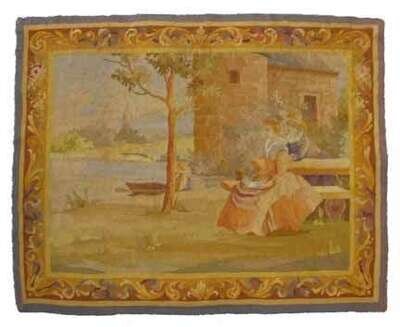 3 ft. 7 in. x 4 ft. 6 in. Depicting a courting scene.