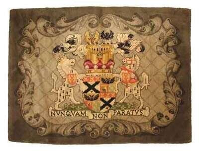 4 ft. 9 in x 6 ft. Inscribed in Latin: "Nunquam Non Paratus" (Never Not Prepared).
